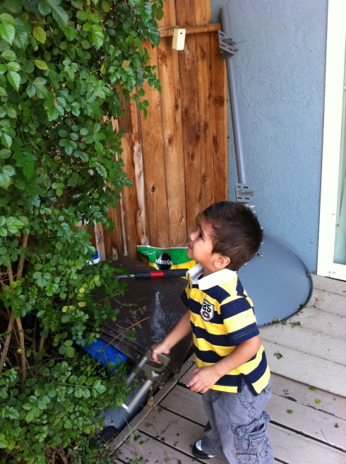 While over at my house, Rockford was put to work. He was cutting trees in my backyard. He took it up like a big boy and added, “I am very strong.”