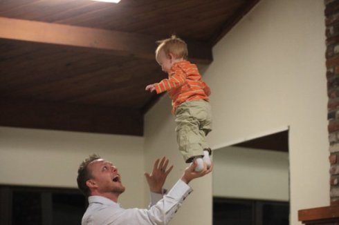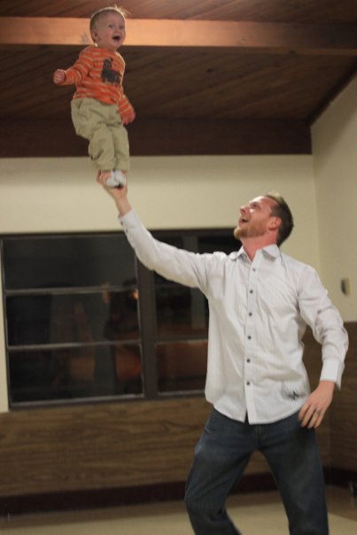 On one occasion Kevin epitomized the quintessential of a dad.  New Year’s Eve 2009  gave some of us reason to cringe in our seats and if I am being honest, want to smack this dad and say, “What’s wrong with you!?”.  Our church holds a Talent Show with our New Year’s Eve gathering and on this given day, Daddy Kevin showcased his father-son act, “The Stunt Baby”.  Sitting next to my mother-in-law and my 20 month old son, I remember gasping at the site of him placing little Conrad (his 10 month old son) in the air with one hand, yet I vividly remember Conrad’s big bright smile almost conveying a, “We’re doing it Daddy, just like we practiced!”  I realized at that moment I needn’t call CPS, I just needed to accept the fact that dads are dads, not moms.