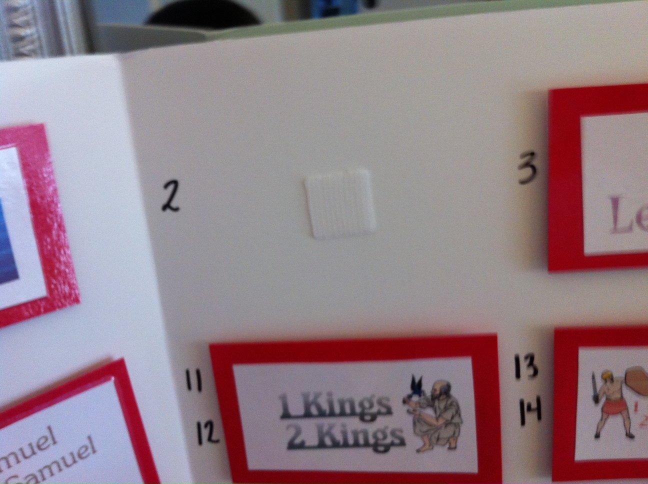 Next, I wrote the number of the book behind each card so my son can turn the card around and see the order of it until he memorizes the order of all of them. We did a similar activity like this with a USA map when he was learning his states and capitals and having the answer on the back helps him do this activity by himself without my assistance.